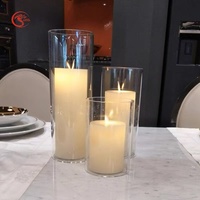 मोमबत्ती के लिए पारदर्शी सीधे बेलनाकार ग्लास के साथ रोमांटिक क्रिसमस मोमबत्ती धारक